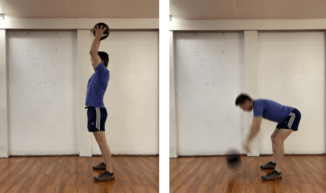 A popular exercise called ball slams is when you hold a slam ball overhead and then launch it to the ground with as much force as possible. Not only is it an explosive strength and cardio exercise but also a good stress reliever as well.