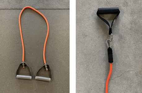 There are two varieties of tubes, one with permanently attached handles and one with a carabiner type clip to attach the handle. This type can easily be stacked to provide more resistance. They also come with other attachments, including an ankle strap and door anchor.
